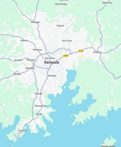 Van Entebbe International Airport naar de hoofdstad Kampala is het 50 km.